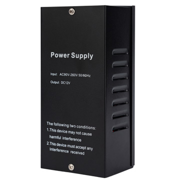 Opciones de salida: CC 12 V/24 V personalizable (ajustable mediante un interruptor de palanca incorporado, que se adapta a los diferentes requisitos de los dispositivos de control de acceso)